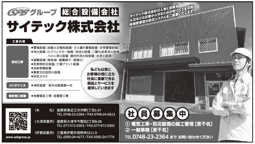 サイテックは、地域や社会の安全を支える消防・防災設備の設計、施工、点検を専門に行う企業です。新たな時代を切り拓く新卒の皆さまをお迎えし、安全で安心な社会を共に作りたいと考えています。